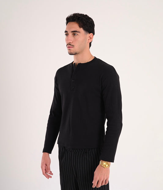Black Henley Ribbed Shirt