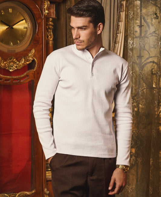 White Henley Ribbed Shirt